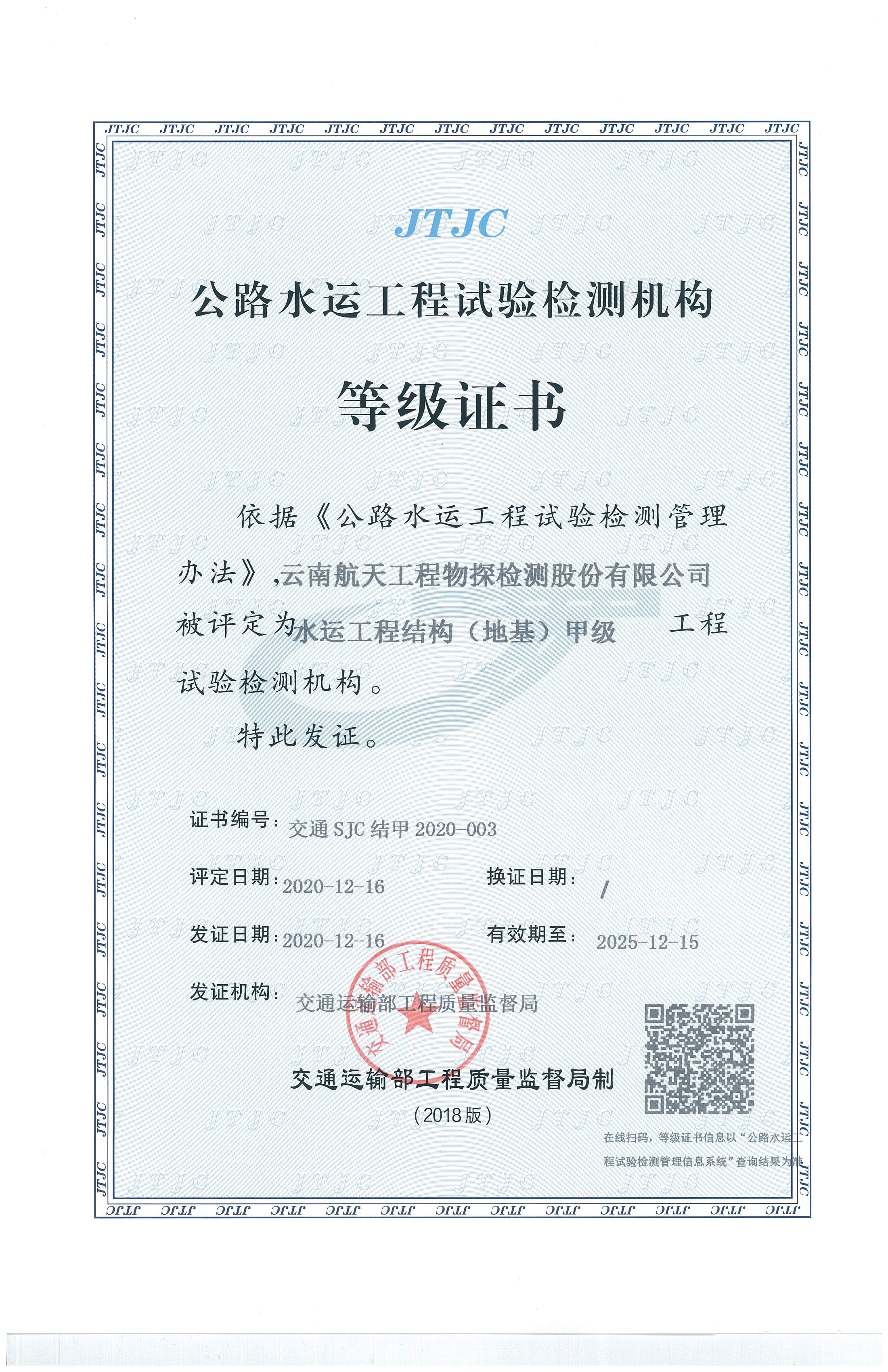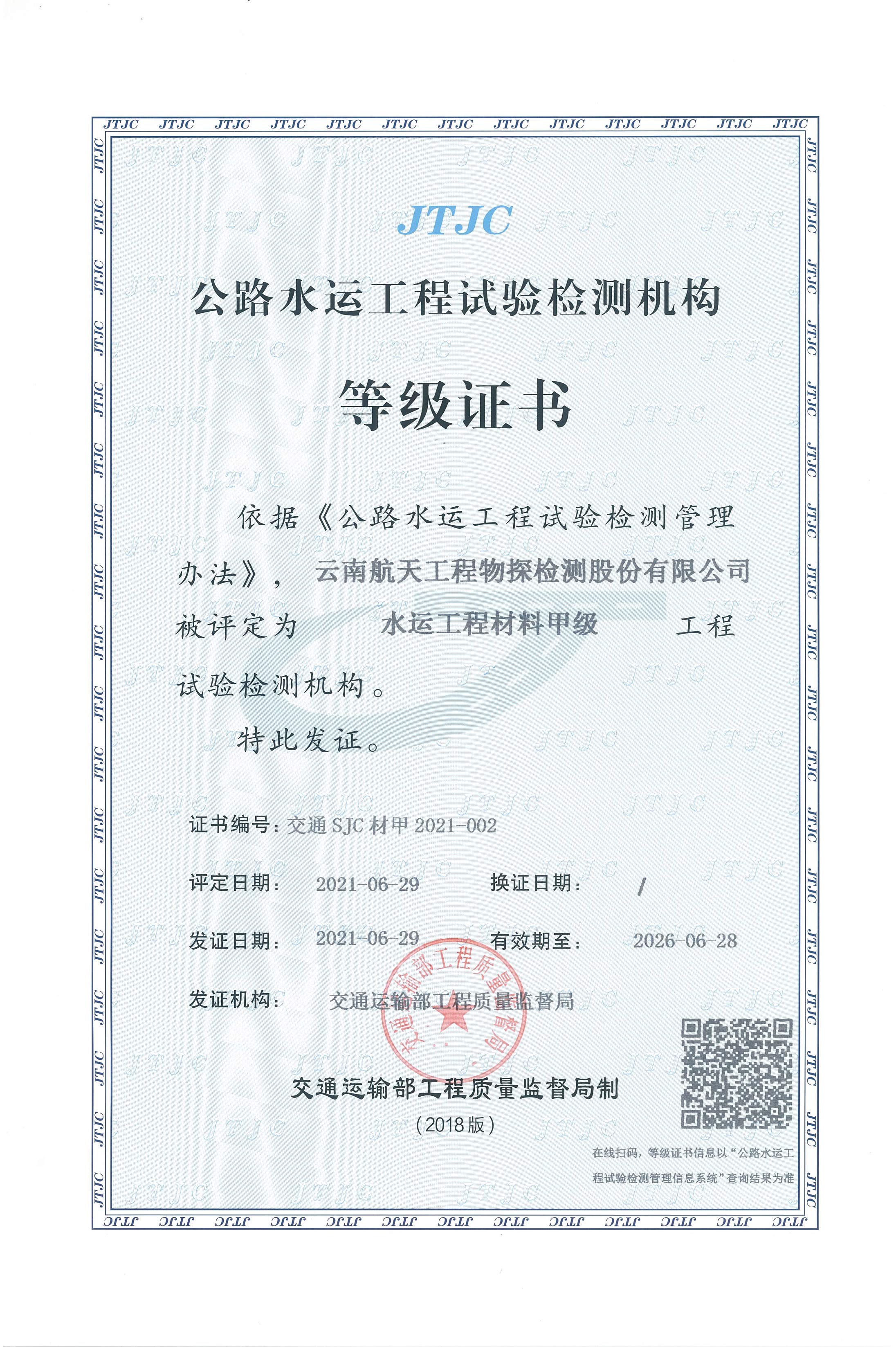 水利工程質(zhì)量檢測單位資質(zhì)等級證...