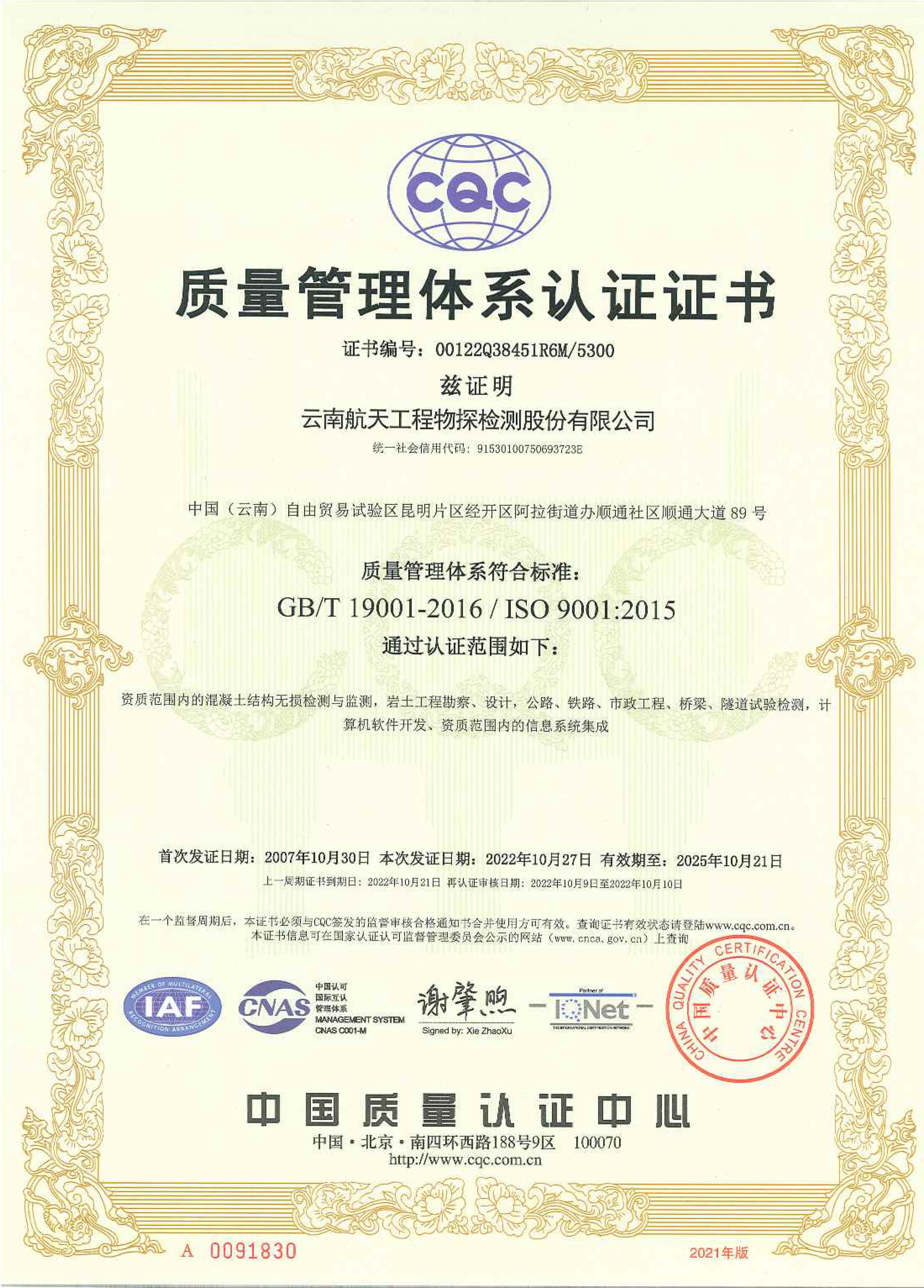 質(zhì)量管理體系認(rèn)證證書